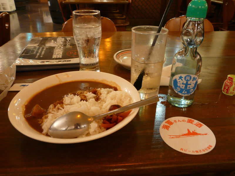 海軍さんの麦酒舘で夕食。海軍カレーとハイボール大和ラムネ割りです。