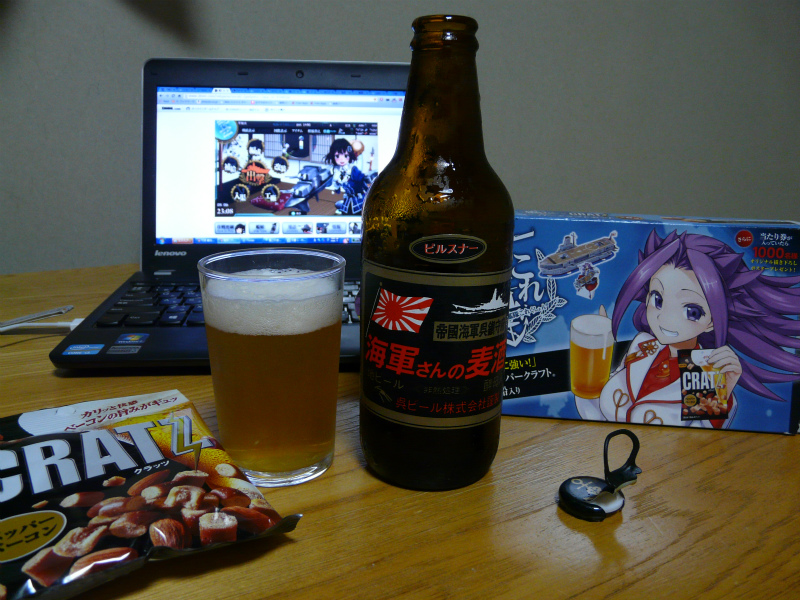 宿に戻って海軍さんの麦酒を艦娘たちと一緒に(笑)